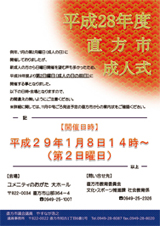 平成28年度 直方市成人式開催日のお知らせ2016年 9月